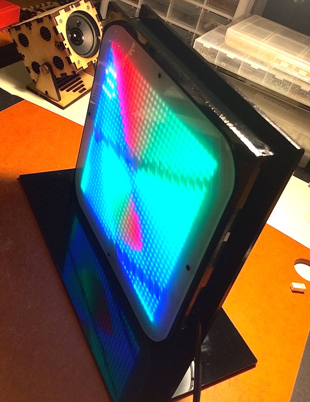 Sometimes I expand a two opposite facing sides to grow larger than the box in both dimensions, so that they end up "squeezing" the contents between them. The picture at the top of the post is using this method: I built this enclosure for the Ada fruit 32x32 LED Matrix powered by SmartMatrix and Teensy 3.1.